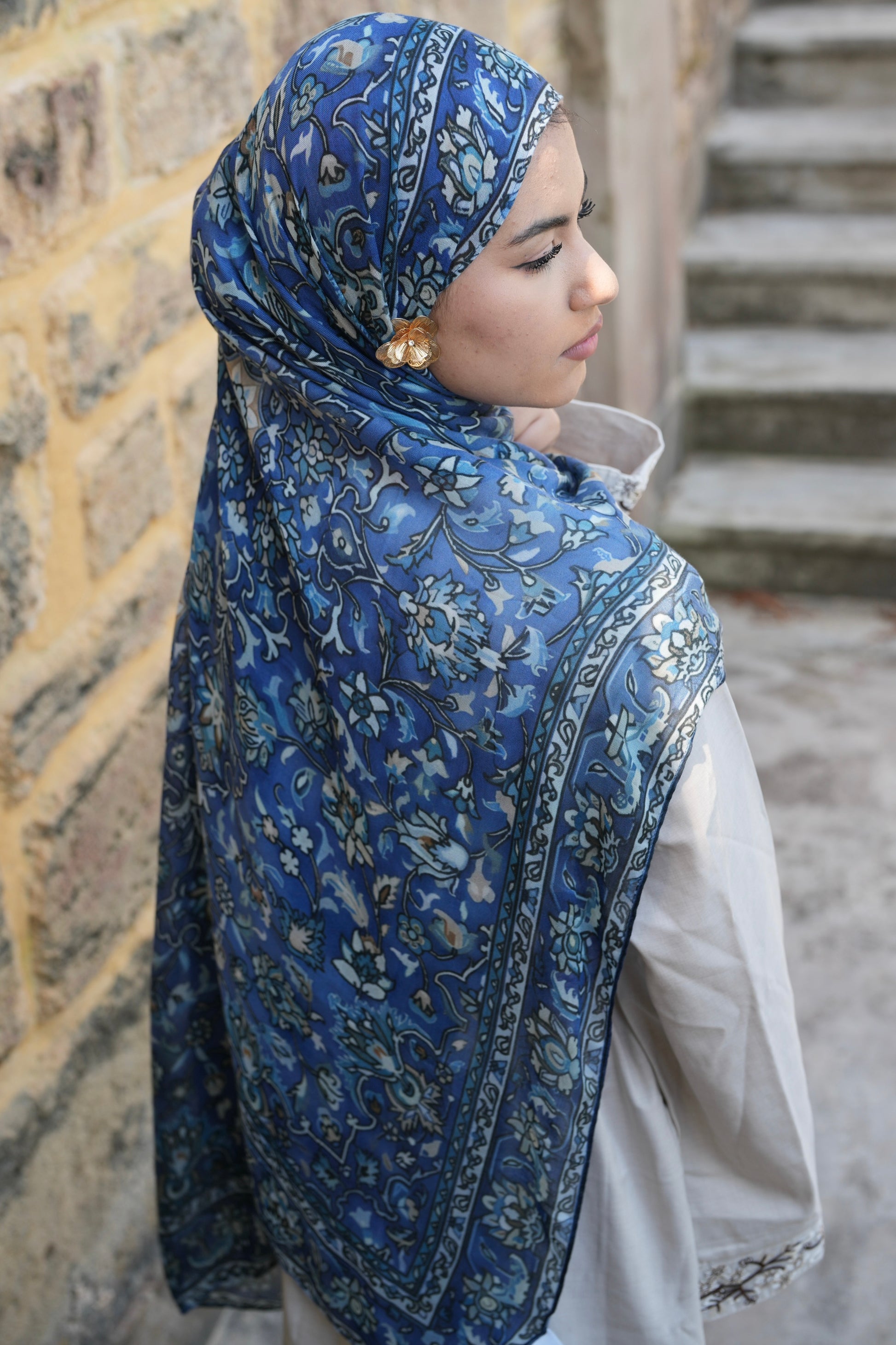 Each hijab print was designed in Perth, WA, by Zahra, founder of Cloaks On You. Inspired by the nostalgia of Persian rugs, wearing the Turath Collection reminds us of the memories gathering around a Persian rug with family.