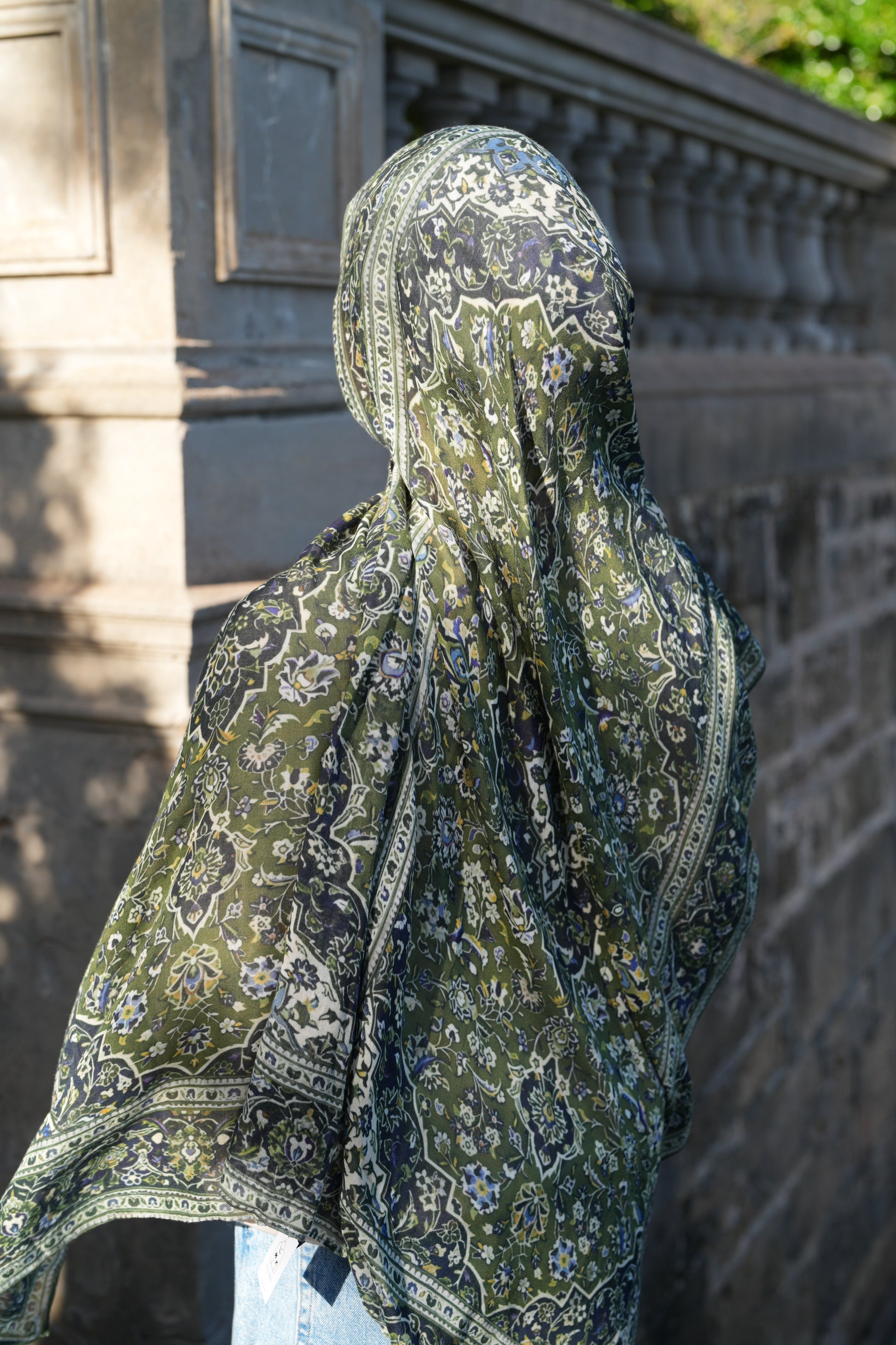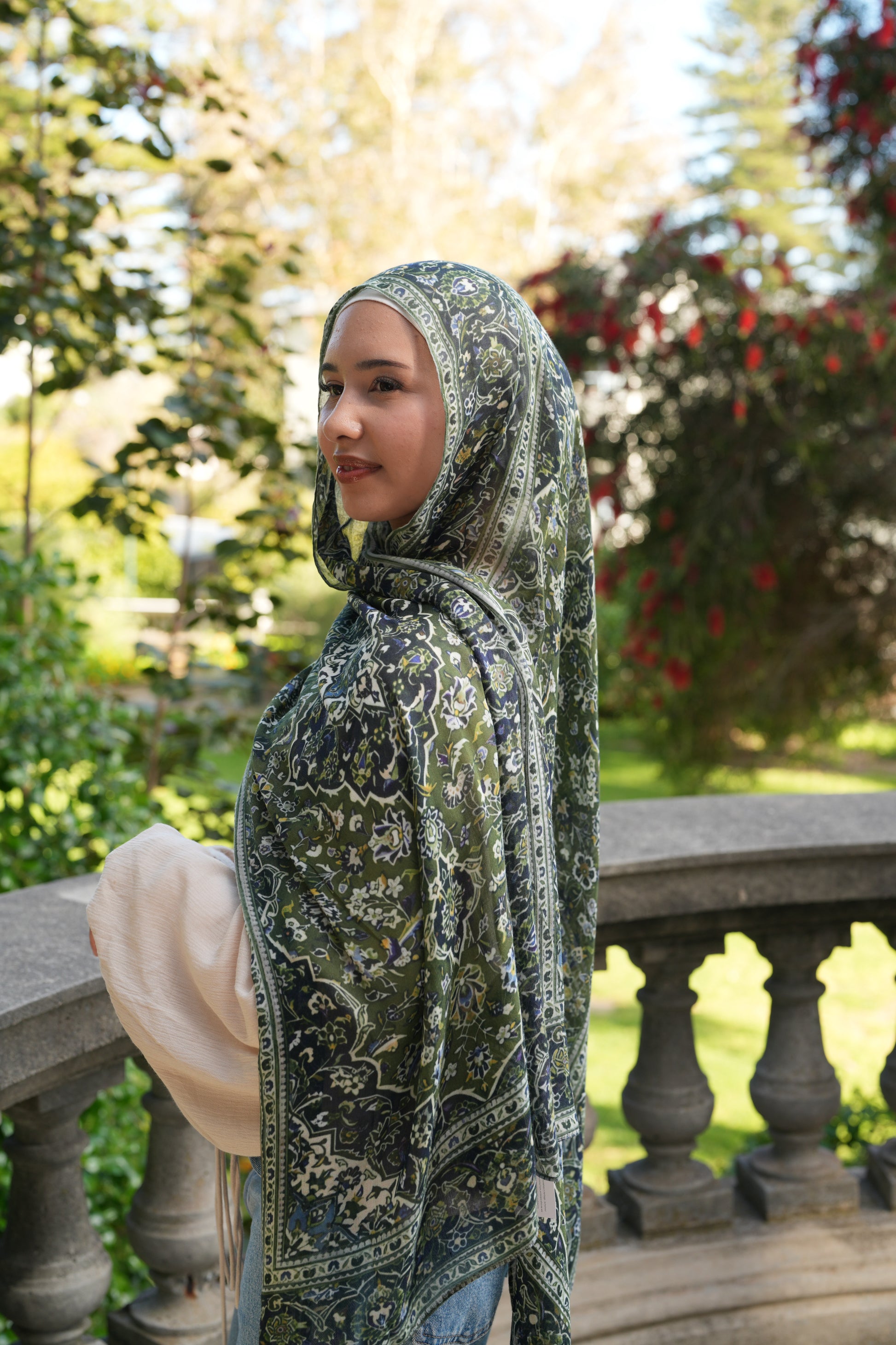 Each hijab print was designed in Perth, WA, by Zahra, founder of Cloaks On You. Inspired by the nostalgia of Persian rugs, wearing the Turath Collection reminds us of the memories gathering around a Persian rug with family.