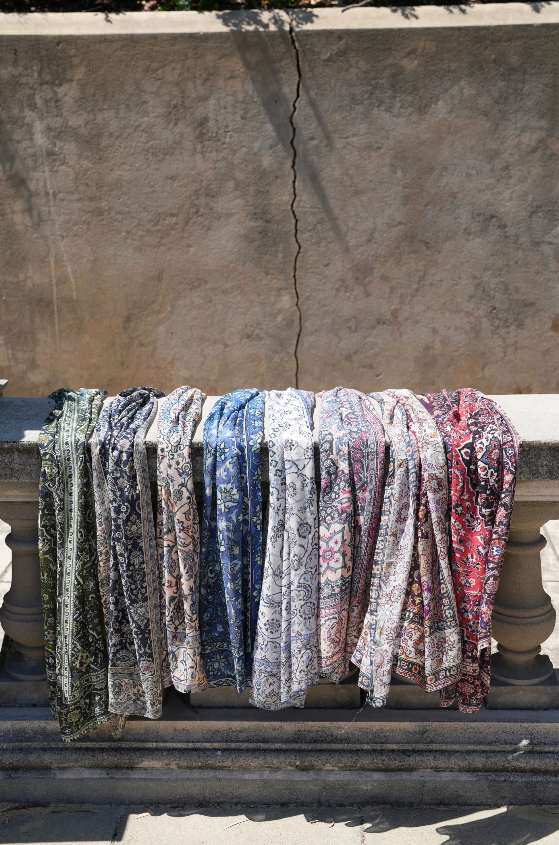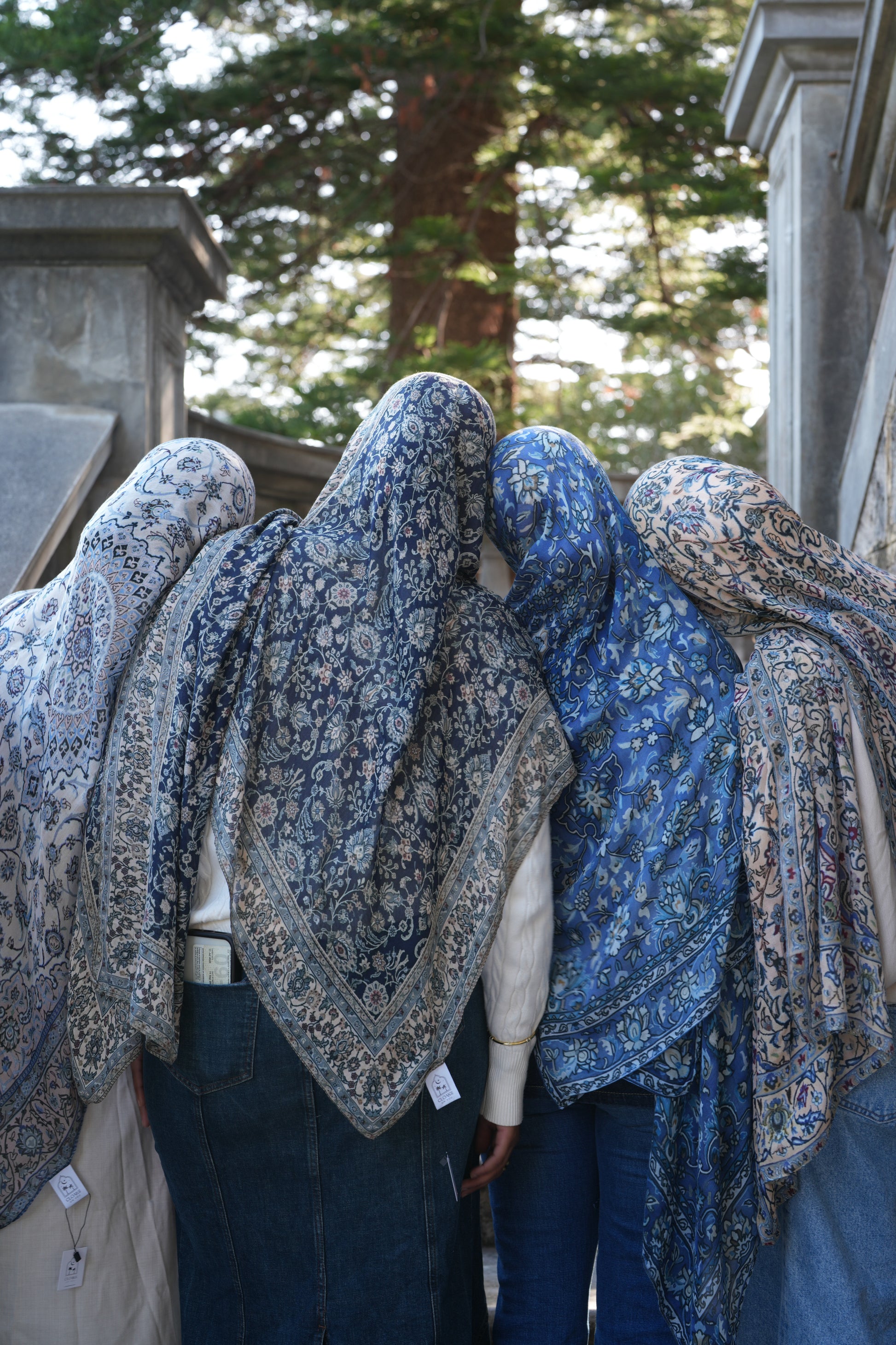 Each hijab print was designed in Perth, WA, by Zahra, founder of Cloaks On You. Inspired by the nostalgia of Persian rugs, wearing the Turath Collection reminds us of the memories gathering around a Persian rug with family.